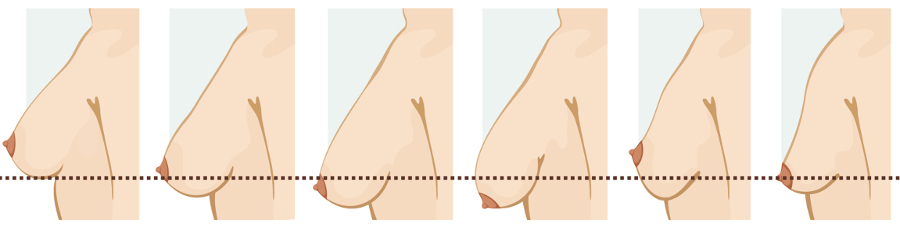 Estos factores determinan diferentes grados y tipos de descenso (ptosis) de los senos. A medida que progresan estos grados de ptosis, la mama puede no solo descender, sino que puede ser acompañado también por el descenso de la areola y pezón, que puede rotar hasta apuntar hacia abajo. En estos casos, las mamas no solo pueden presentar una pérdida de la forma y del volumen, sino que también puede asociarse flaccidez cutánea y estrías.